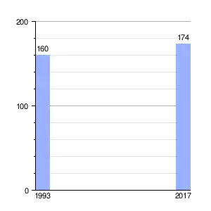 | Gráfica de evolución demográfica de San José entre 1993 y 2017 |