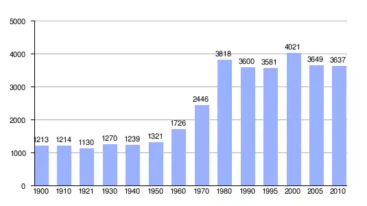 | Gráfica de evolución demográfica de San Juan Raboso entre 1900 y 2010 |