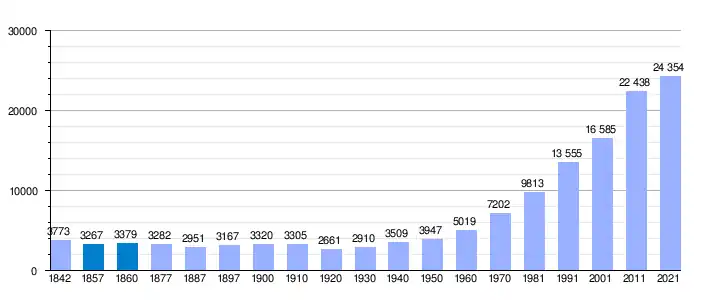 | Gráfica de evolución demográfica de San Juan de Alicante[6] entre 1842 y 2021 |