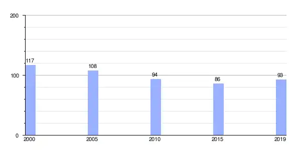 | Gráfica de evolución demográfica de Barredo entre 2000 y 2019 |