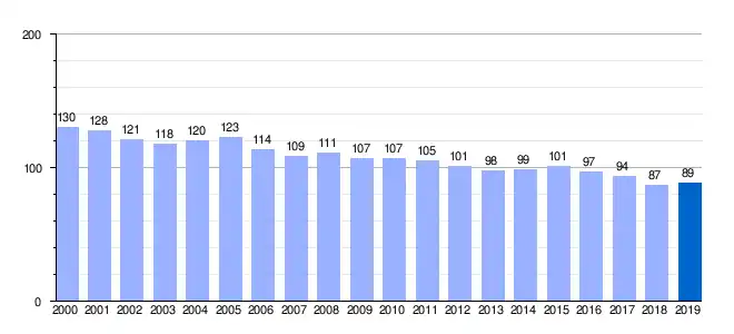 | Gráfica de evolución demográfica de San Juanico el Nuevo[7] entre 2000 y 2019 |