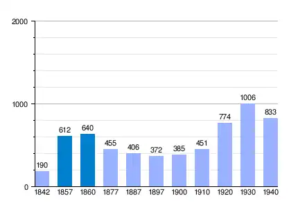 | Gráfica de evolución demográfica de San Julián de Cerdañola[6] entre 1842 y 1940 |