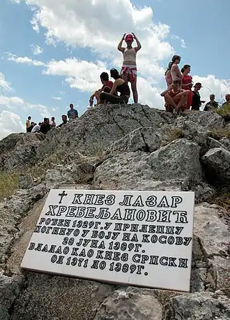 Maldición de Kosovo:![]() «Aquel que sea serbio y serbio de nacimiento, —El zar Lazar maldice a todos los que no tomen las armas contra los turcos otomanos en la batalla de Kosovo.[81] |
