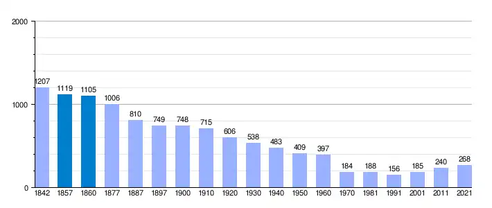 | Gráfica de evolución demográfica de San Lorenzo de la Muga[3] entre 1842 y 2021 |