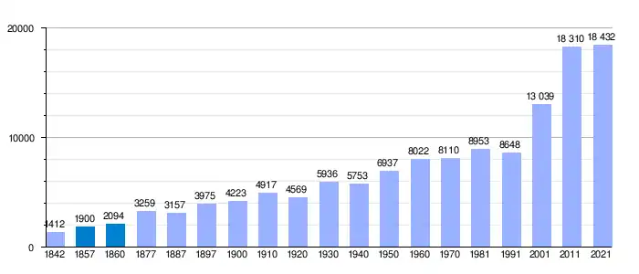 | Gráfica de evolución demográfica de San Lorenzo de El Escorial[9] entre 1842 y 2021 |