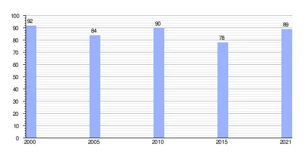 | Gráfica de evolución demográfica de Urriós entre 2000 y 2021 |