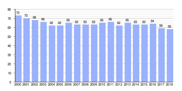 | Gráfica de evolución demográfica de San Mamede entre 2000 y 2018 |