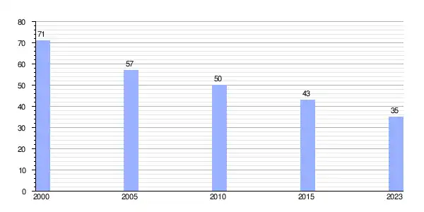 Gráfica de evolución demográfica de San Mamed entre 2000 y 2023