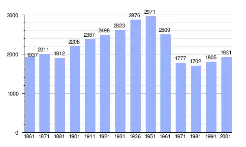 | Gráfica de evolución demográfica de San Marcello entre 1861 y 2001 |