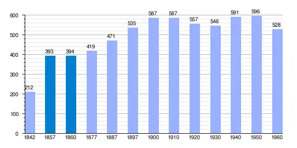 | Gráfica de evolución demográfica de San Marcial[5] entre 1842 y 1960 |