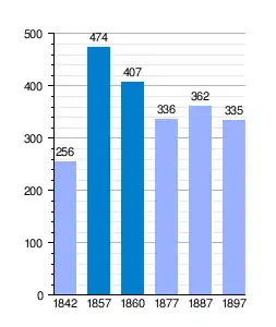 | Gráfica de evolución demográfica de San Martín Sescorts[4] entre 1842 y 1897 |