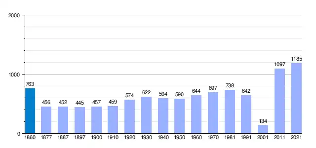 | Gráfica de evolución demográfica de San Martín de Centellas[6] entre 1860 y 2021 |