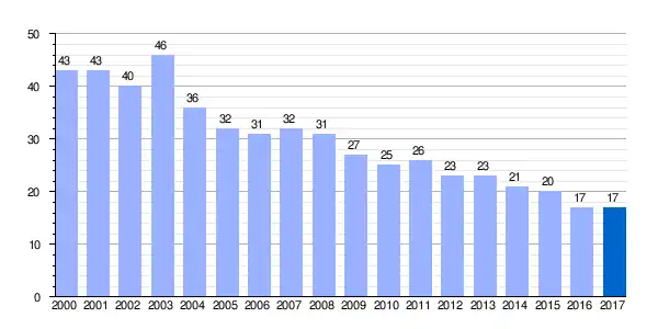 | Gráfica de evolución demográfica de San Martín de Losa entre 2000 y 2017 |