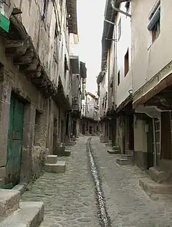 La vivienda tradicional se caracteriza por tener al menos dos alturas y una planta baja o bodega donde se guardaba el ganado. Sobre esta planta baja, que suele ser de piedra, se elevan, sobre un entramado de madera y adobe, las otras dos plantas que son la vivienda y el desván. Para acceder al primer piso, antecediendo a las escaleras interiores, suelen encontrarse poyos de cantería. Junto a estas viviendas existen casas señoriales con sus correspondientes escudos de armas.