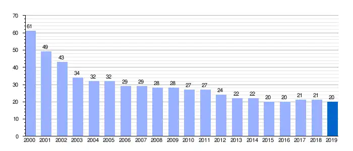 | Gráfica de evolución demográfica de San Martín de las Ollas entre 2000 y 2019 |