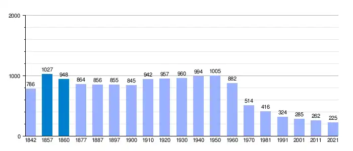 | Gráfica de evolución demográfica de San Martín del Castañar[5] entre 1842 y 2021 |