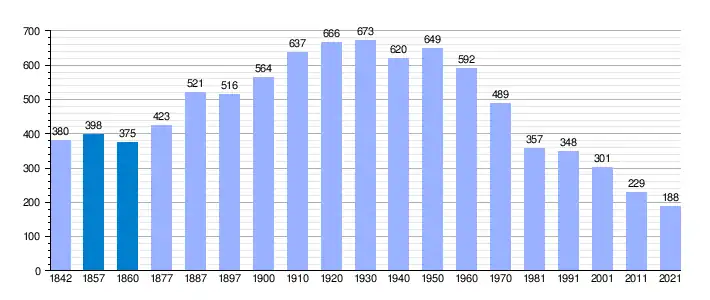 | Gráfica de evolución demográfica de San Martin del Pimpollar[5] entre 1842 y 2021 |