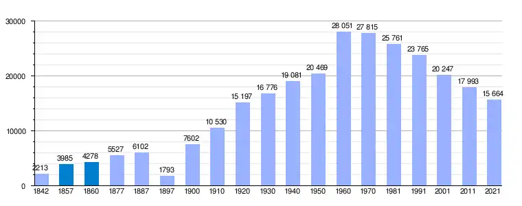 | Gráfica de evolución demográfica de San Martín del Rey Aurelio[5] entre 1842 y 2021 |