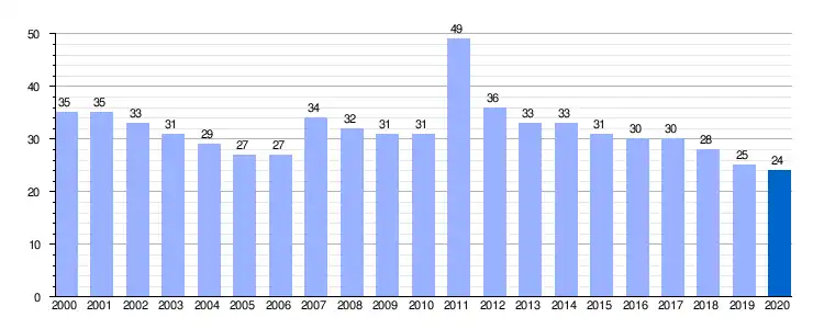 | Gráfica de evolución demográfica de San Martín del Valle entre 2000 y 2020 |