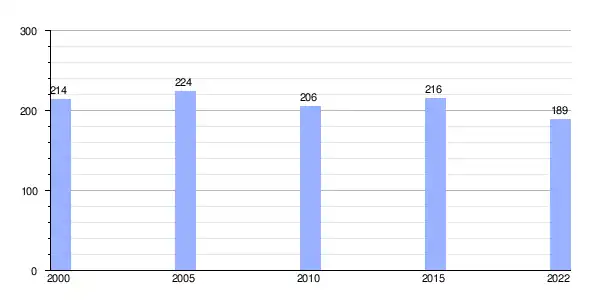 | Gráfica de evolución demográfica de Manzaneda entre 2000 y 2022 |