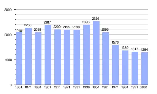 | Gráfica de evolución demográfica de San Martino di Finita entre 1861 y 2001 |