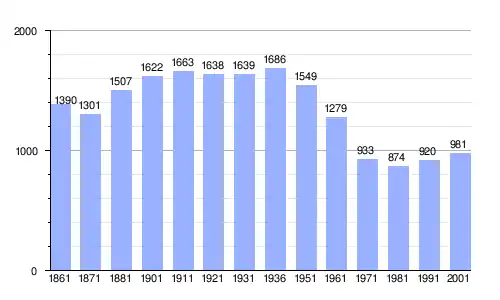 | Gráfica de evolución demográfica de San Martino sulla Marrucina entre 1861 y 2001 |