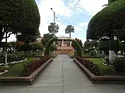 Vista aérea del centro del municipio, parque central y condominios.