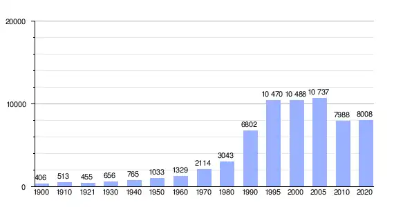 Población de los censos y conteos del Instituto Nacional de Estadística y Geografía (INEGI) de 1900 a 2010.[6] |