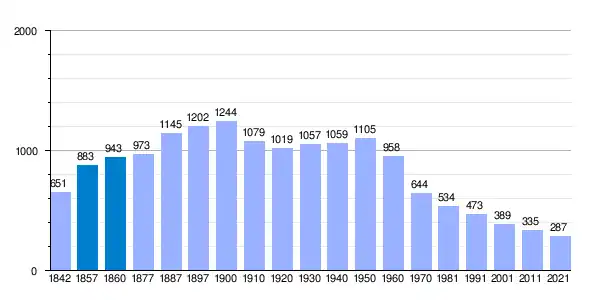 | Gráfica de evolución demográfica de San Miguel de la Ribera[11] entre 1842 y 2021 |