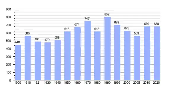 En 2020 registró una población de 680 personas, lo que corresponde al 1.48 % de la población municipal.[13] De los cuales 317 son hombres y 363 son mujeres.[13] Tiene 169 viviendas particulares habitadas.[13]
