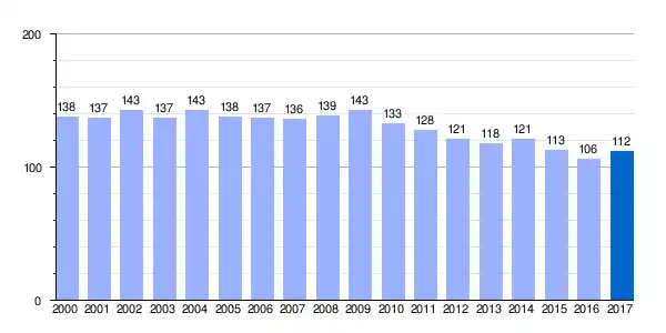 | Gráfica de evolución demográfica de San Millán de Juarros entre 2000 y 2017 |