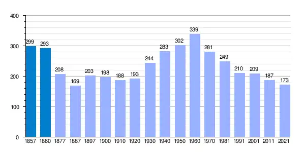 | Gráfica de evolución demográfica de San Millán de los Caballeros[5] entre 1857 y 2021 |
