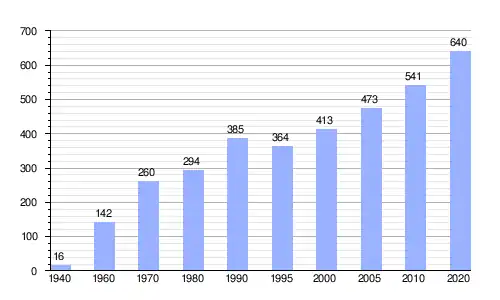 | Gráfica de evolución demográfica de San Nicolás entre 1940 y 2020 |