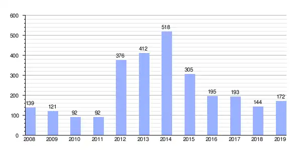 Deuda viva del Ayuntamiento de San Nicolás del Puerto en miles de Euros según datos del Ministerio de Hacienda y Ad. Públicas.[3] |