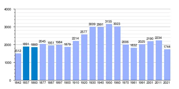 | Gráfica de evolución demográfica de San Pablo de los Montes[5] entre 1842 y 2021 |