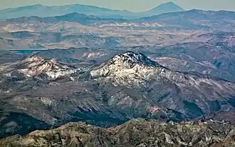 ![]() Vista del complejo San Pedro - Pellado en la parte central de la imagen. En la parte superior también se divisa el Nevado de Longaví. | ||
