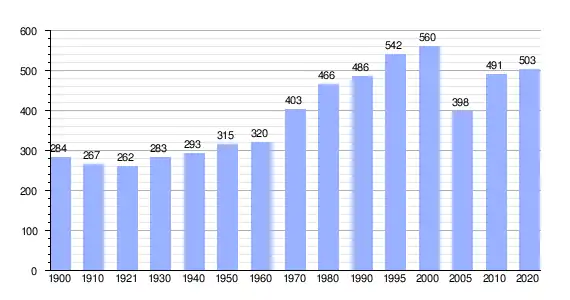 | Gráfica de evolución demográfica de San Pedro entre 1900 y 2020 |