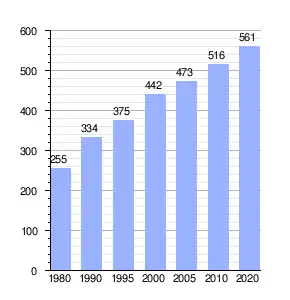 | Gráfica de evolución demográfica de San Pedro entre 1980 y 2020 |