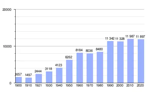 Cuenta con 11 897 habitantes, lo que representa un decremento promedio de -0.080 % anual en el período 2010-2020 sobre la base de los 11 987 habitantes registrados en el censo anterior. Ocupa una superficie de 6.085 km², lo que determina en el año 2020 una densidad de 1955 hab/km².[7]