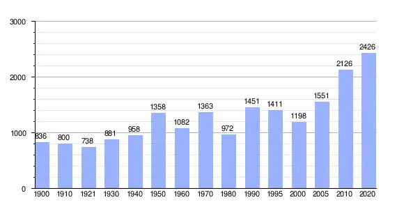 En 2020 registró una población de 2426 personas, lo que corresponde al 4.19 % de la población municipal.[7] De los cuales 1203 son hombres y 1223 son mujeres.[7]