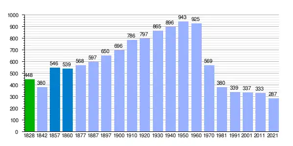 | Gráfica de evolución demográfica de San Pedro de Gaíllos[6] entre 1828 y 2021 |
