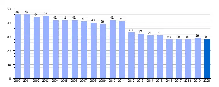 | Gráfica de evolución demográfica de San Pedro de Ojeda entre 2000 y 2020 |
