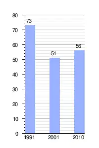 | Gráfica de evolución demográfica de San Pedro de Toyos entre 1991 y 2010 |