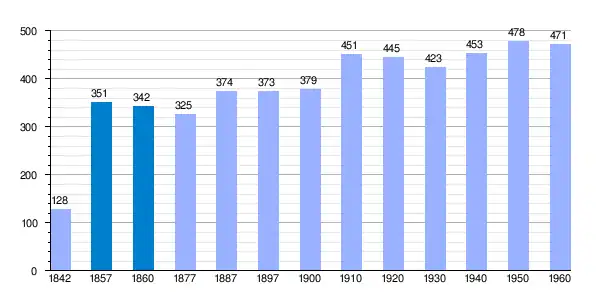 | Gráfica de evolución demográfica de San Pedro de la Viña[6] entre 1842 y 1960 |