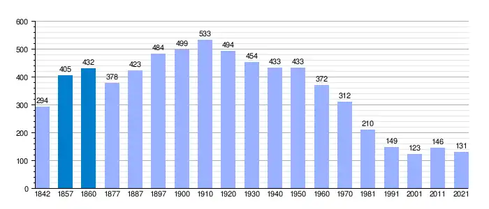 | Gráfica de evolución demográfica de San Pedro del Valle[6] entre 1842 y 2021 |