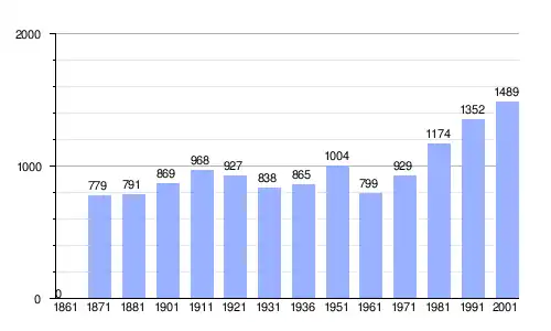 | Gráfica de evolución demográfica de San Pietro Mussolino entre 1861 y 2001 |
