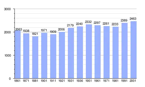 | Gráfica de evolución demográfica de San Quirico d'Orcia entre 1861 y 2001 |