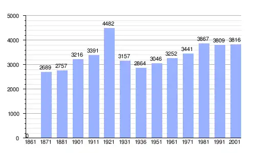 | Gráfica de evolución demográfica de San Quirino entre 1861 y 2001 |