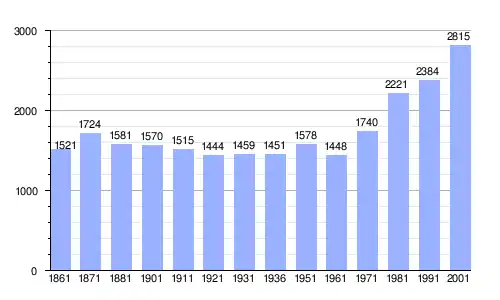 | Gráfica de evolución demográfica de San Raffaele Cimena entre 1861 y 2001 |