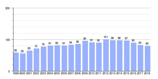 | Gráfica de evolución demográfica de San Román entre 1999 y 2018 |